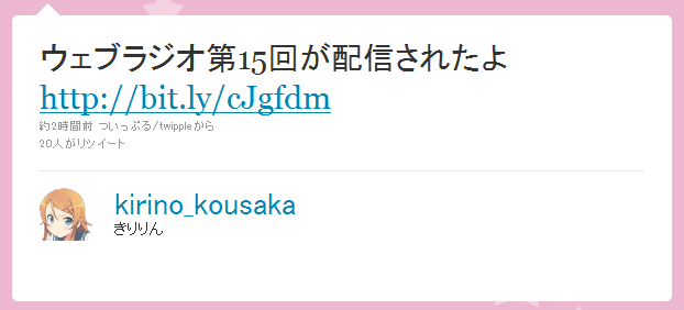 ¥¦¥§¥Ö¥é¥¸¥ªÂè15²ó¤¬ÇÛ¿®¤µ¤ì¤¿¤è http://bit.ly/cJgfdm