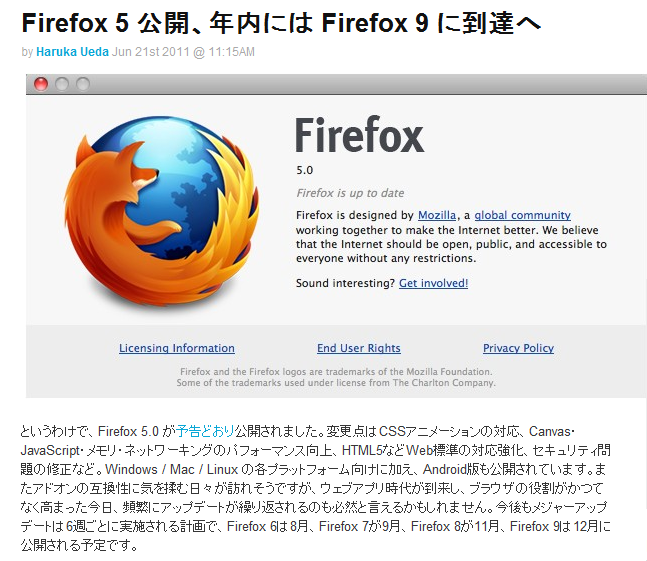 ¢£Firefox 5 ¸ø³«¡¢Ç¯Æâ¤Ë¤Ï Firefox 9 ¤ËÅþã¤Ø