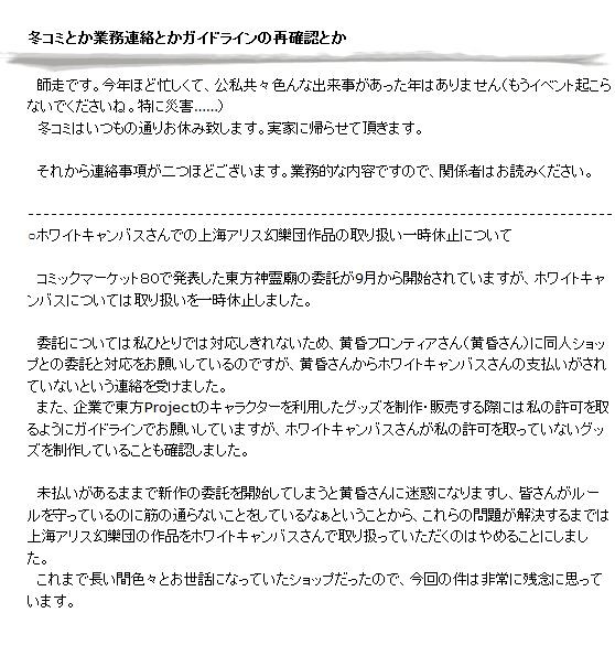 ¤Þ¤¿¡¢´ë¶È¤ÇÅìÊýProject¤Î¥¥ã¥é¥¯¥¿¡¼¤òÍøÍѤ·¤¿¥°¥Ã¥º¤òÀ©ºî¡¦ÈÎÇ䤹¤ëºÝ¤Ë¤Ï»ä¤Îµö²Ä¤ò¼è¤ë¤è¤¦¤Ë¥¬¥¤¥É¥é¥¤¥ó¤Ç¤ª´ê¤¤¤·¤Æ¤¤¤Þ¤¹¤¬¡¢¥Û¥ï¥¤¥È¥¥ã¥ó¥Ð¥¹¤µ¤ó¤¬»ä¤Îµö²Ä¤ò¼è¤Ã¤Æ¤¤¤Ê¤¤¥°¥Ã¥º¤òÀ©ºî¤·¤Æ¤¤¤ë¤³¤È¤â³Îǧ¤·¤Þ¤·¤¿¡£