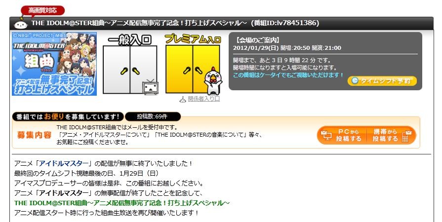 ¡Ú¥Ë¥³À¸¡Û¡Ö¥¢¥¤¥É¥ë¥Þ¥¹¥¿¡¼¡×¥¢¥Ë¥áÇÛ¿®Ìµ»ö´°Î»µÇ°¡ªÂǤÁ¾å¤²¥¹¥Ú¥·¥ã¥ë³«ºÅ¡ª