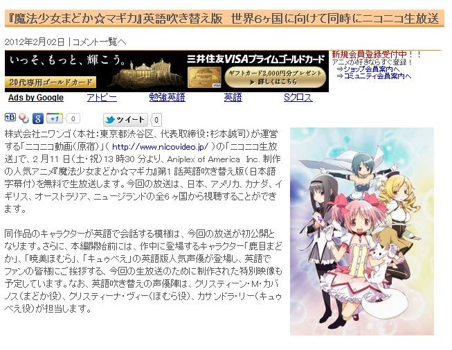 ³ô¼°²ñ¼Ò¥Ë¥ï¥ó¥´¡ÊËܼҡ§ÅìµþÅÔ½Âë¶è¡¢Âåɽ¼èÄùÌò¡§¿ùËÜÀ¿»Ê¡Ë¤¬±¿±Ä¤¹¤ë¡Ö¥Ë¥³¥Ë¥³Æ°²è¡Ê¸¶½É¡Ë¡×¡Ê http://www.nicovideo.jp/ ¡Ë¤Î¡Ö¥Ë¥³¥Ë¥³À¸ÊüÁ÷¡×¤Ç¡¢2 ·î11 Æü¡ÊÅÚ¡¦½Ë¡Ë13 »þ30 ʬ¤è¤ê¡¢Aniplex of America¡¡Inc. À©ºî¤Î¿Íµ¤¥¢¥Ë¥á¡ØËâË¡¾¯½÷¤Þ¤É¤«¡ù¥Þ¥®¥«¡ÙÂè1 ÏñѸì¿á¤Âؤ¨ÈÇ¡ÊÆüËܸì»úËëÉաˤò̵ÎÁ¤ÇÀ¸ÊüÁ÷¤·¤Þ¤¹¡£º£²ó¤ÎÊüÁ÷¤Ï¡¢ÆüËÜ¡¢¥¢¥á¥ê¥«¡¢¥«¥Ê¥À¡¢¥¤¥®¥ê¥¹¡¢¥ª¡¼¥¹¥È¥é¥ê¥¢¡¢¥Ë¥å¡¼¥¸¥é¥ó¥É¤ÎÁ´6 ¥ö¹ñ¤«¤é»ëݤ¹¤ë¤³¤È¤¬¤Ç¤¤Þ¤¹¡£