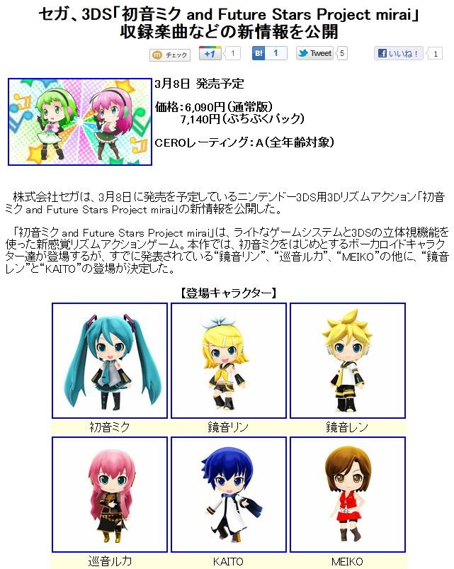 ½é²»¥ß¥¯ and Future Stars Project mirai ¥¢¥¯¥»¥µ¥ê¡¼¥»¥Ã¥È for ¥Ë¥ó¥Æ¥ó¥É¡¼3DS