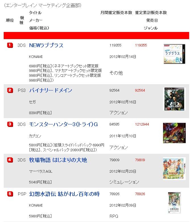 2012ǯ02·î´ü¡¦·î´Ö¥²¡¼¥à¥½¥Õ¥ÈÈÎÇä¥é¥ó¥¥ó¥°¡Ê½¸·×´ü´Ö¡§2012ǯ01·î30Æü?2012ǯ02·î26Æü¡Ë
