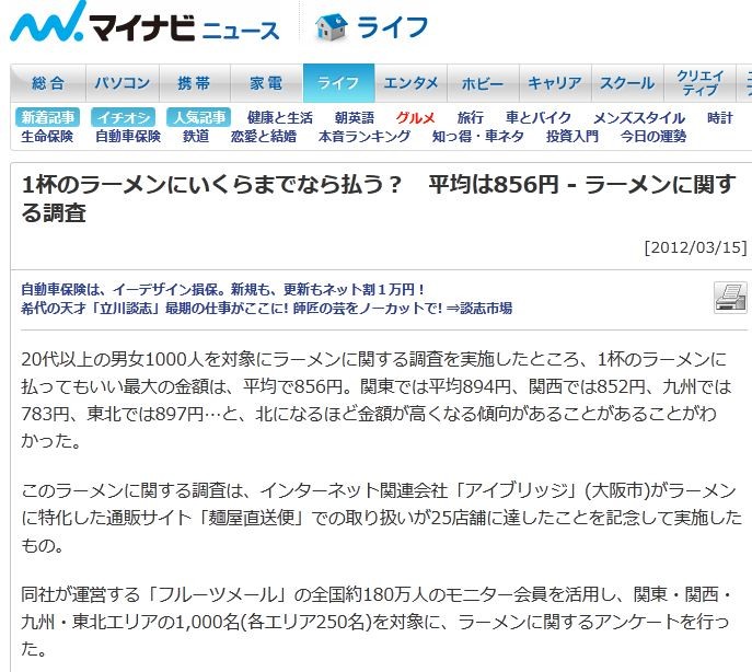 ¤³¤Î¥é¡¼¥á¥ó¤Ë´Ø¤¹¤ëÄ´ºº¤Ï¡¢¥¤¥ó¥¿¡¼¥Í¥Ã¥È´ØÏ¢²ñ¼Ò¡Ö¥¢¥¤¥Ö¥ê¥Ã¥¸¡×(Âçºå»Ô)¤¬¥é¡¼¥á¥ó¤ËÆÃ²½¤·¤¿ÄÌÈÎ¥µ¥¤¥È¡ÖÌͲ°Ä¾Á÷ÊØ¡×¤Ç¤Î¼è¤ê°·¤¤¤¬25ŹÊÞ¤Ë㤷¤¿¤³¤È¤òµÇ°¤·¤Æ¼Â»Ü¤·¤¿¤â¤Î¡£