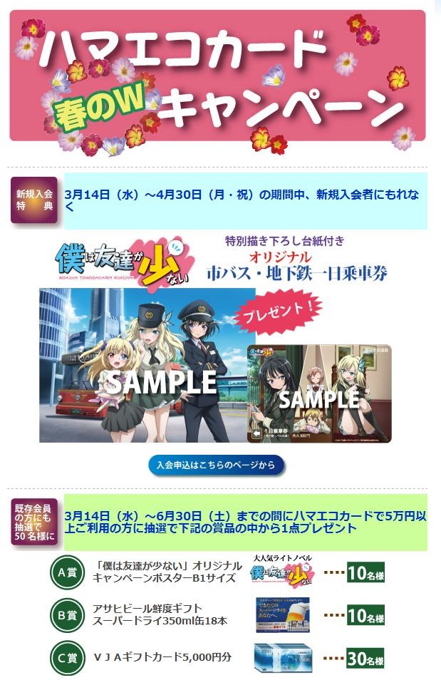 ¡Ú¤Ï¤¬¤Ê¤¤¡ß²£ÉͻԸòÄ̶ɡۤ¬¥³¥é¥Ü¡ª¡Öhama-eco card¡×Æþ²ñ¤ÇÉÁ¤²¼¤í¤·Âæ»æÉÕ¤£±Æü¾è¼Ö·ô¥×¥ì¥¼¥ó¥È