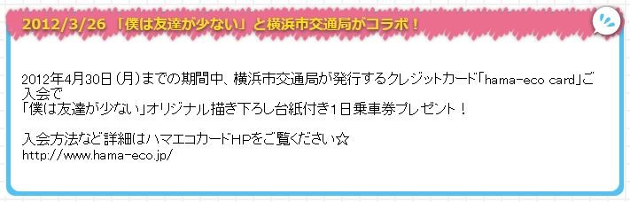 2012ǯ4·î30Æü¡Ê·î¡Ë¤Þ¤Ç¤Î´ü´ÖÃæ¡¢²£ÉͻԸòÄ̶ɤ¬È¯¹Ô¤¹¤ë¥¯¥ì¥¸¥Ã¥È¥«¡¼¥É¡Öhama-eco card¡×¤´Æþ²ñ¤Ç¡ÖËͤÏͧ㤬¾¯¤Ê¤¤¡×¥ª¥ê¥¸¥Ê¥ëÉÁ¤²¼¤í¤·Âæ»æÉÕ¤£±Æü¾è¼Ö·ô¥×¥ì¥¼¥ó¥È¡ª