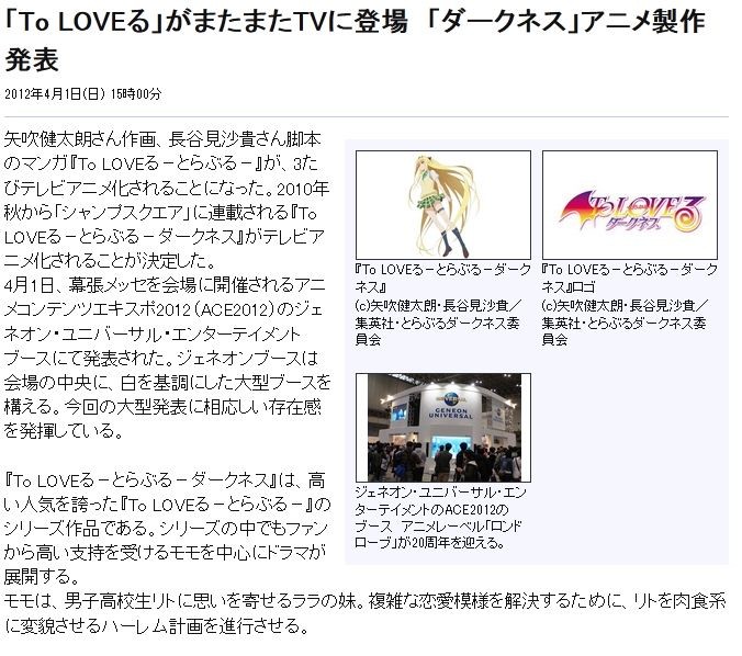 ¡ÖTo LOVE¤ë¡×¤¬¤Þ¤¿¤Þ¤¿TV¤ËÅо졡¡Ö¥À¡¼¥¯¥Í¥¹¡×¥¢¥Ë¥áÀ½ºîȯɽ