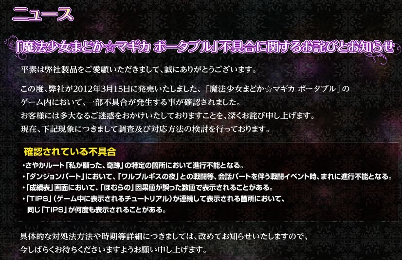 PSP¤Þ¤É¤«¡ù¥Þ¥®¥«¥Ý¡¼¥¿¥Ö¥ë¤Î°ìÉôÉÔ¶ñ¹ç¤Ë´Ø¤·¤Æ¹ðÃΤò·ÇºÜ¤µ¤»¤Æ¤¤¤¿¤À¤¤Þ¤·¤¿¡£
