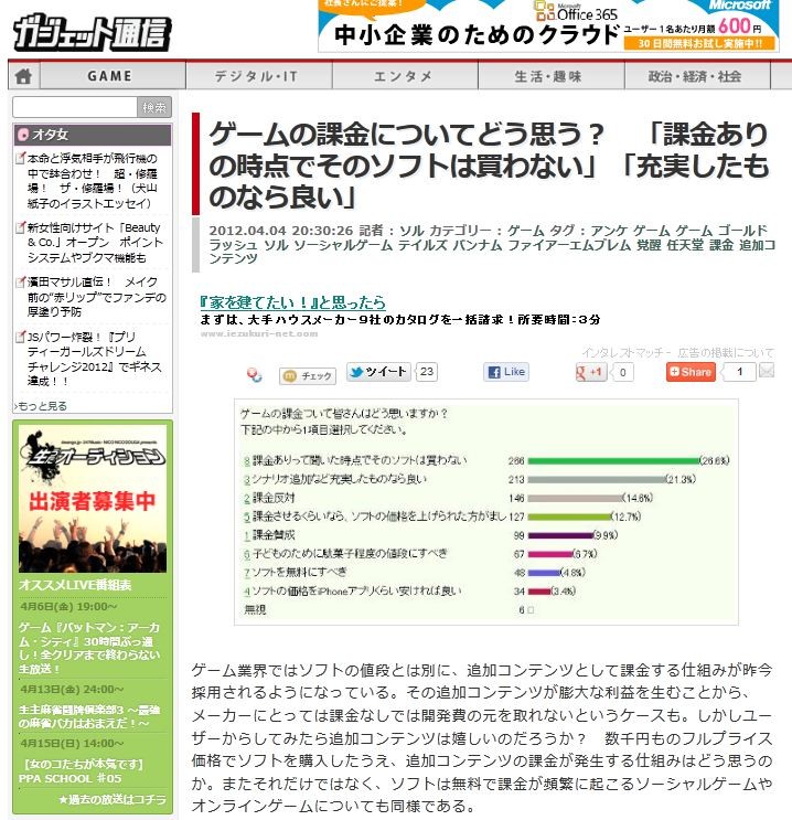 ¥²¡¼¥à¶È³¦¤Ç¤Ï¥½¥Õ¥È¤ÎÃÍÃʤȤÏÊ̤ˡ¢Äɲ峥󥯥ó¥Ä¤È¤·¤Æ²Ý¶â¤¹¤ë»ÅÁȤߤ¬ºòº£ºÎÍѤµ¤ì¤ë¤è¤¦¤Ë¤Ê¤Ã¤Æ¤¤¤ë¡£¤½¤ÎÄɲ峥󥯥ó¥Ä¤¬ËÄÂç¤ÊÍø±×¤òÀ¸¤à¤³¤È¤«¤é¡¢¥á¡¼¥«¡¼¤Ë¤È¤Ã¤Æ¤Ï²Ý¶â¤Ê¤·¤Ç¤Ï³«È¯Èñ¤Î¸µ¤ò¼è¤ì¤Ê¤¤¤È¤¤¤¦¥±¡¼¥¹¤â¡£¤·¤«¤·¥æ¡¼¥¶¡¼¤«¤é¤·¤Æ¤ß¤¿¤éÄɲ峥󥯥ó¥Ä¤Ï´ò¤·¤¤¤Î¤À¤í¤¦¤«¡©¡¡¿ôÀé±ß¤â¤Î¥Õ¥ë¥×¥é¥¤¥¹²Á³Ê¤Ç¥½¥Õ¥È¤ò¹ØÆþ¤·¤¿¤¦¤¨¡¢Äɲ峥󥯥ó¥Ä¤Î²Ý¶â¤¬È¯À¸¤¹¤ë»ÅÁȤߤϤɤ¦»×¤¦¤Î¤«¡£¤Þ¤¿¤½¤ì¤À¤±¤Ç¤Ï¤Ê¤¯¡¢¥½¥Õ¥È¤Ï̵ÎÁ¤Ç²Ý¶â¤¬ÉÑÈˤ˵¯¤³¤ë¥½¡¼¥·¥ã¥ë¥²¡¼¥à¤ä¥ª¥ó¥é¥¤¥ó¥²¡¼¥à¤Ë¤Ä¤¤¤Æ¤âƱÍͤǤ¢¤ë¡£