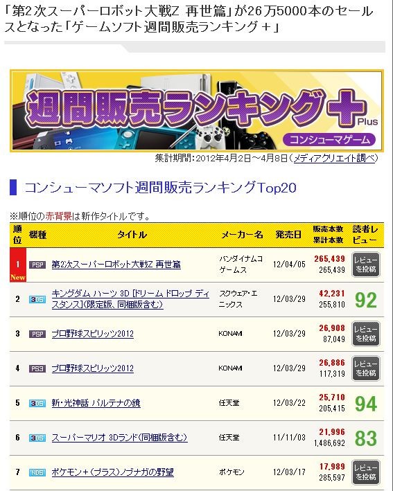 ¼ó°Ì¤Ï¡ØÂè2¼¡¥¹¡¼¥Ñ¡¼¥í¥Ü¥Ã¥ÈÂçÀïZ ºÆÀ¸ÊÓ¡Ù26Ëü5000ËÜ¡ªVita¤¬4·å¤Ë¡¦¡¦¡¦¡Ú2012/04/18ÉÕ¡¡¥²¡¼¥à¥¦¥£¡¼¥¯¥ê¡¼¡Û