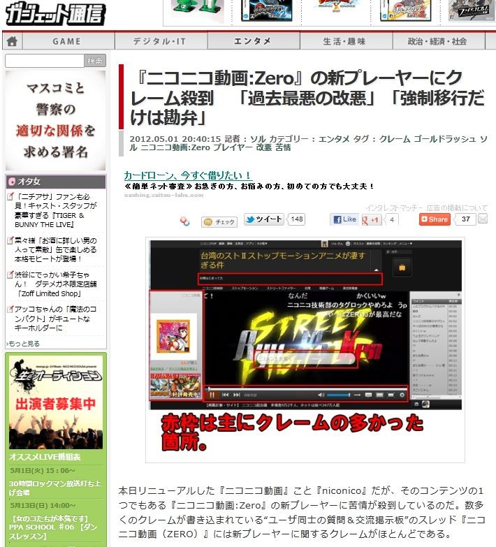 ¡Ø¥Ë¥³¥Ë¥³Æ°²èZero¡Ù¤Î¿·¥×¥ì¡¼¥ä¡¼¤ËÉÔËþ»¦Åþ¡Ö²áµîºÇ°¤Î²þ°¡×¡Ö¶¯À©°Ü¹Ô¤À¤±¤Ï´ªÊÛ¡×