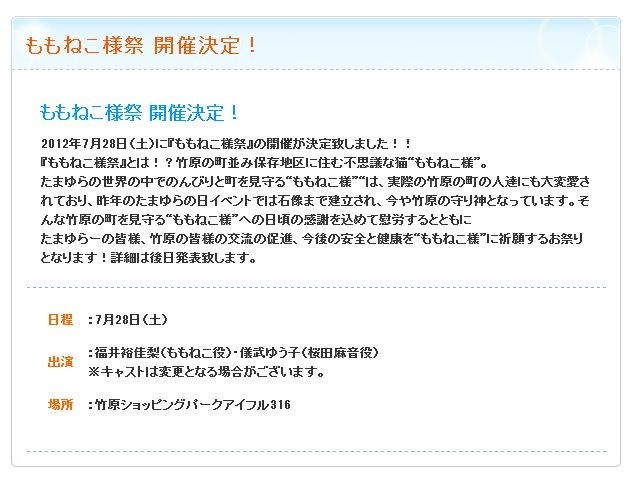 ¡Ú¤¿¤Þ¤æ¤é¡Û7·î28Æü¤Ë¥¤¥Ù¥ó¥È¡Ö¤â¤â¤Í¤³Íͺס׳«ºÅ·èÄꡪ