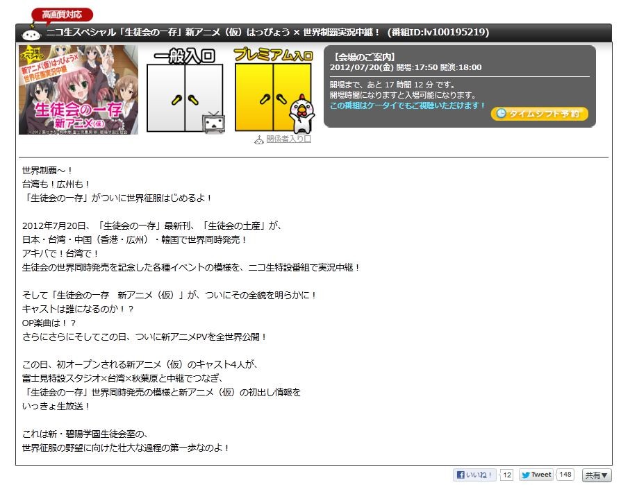À¸Å̲ñ¤ÎÀ¤³¦Æ±»þȯÇä¤òµÇ°¤·¤¿³Æ¼ï¥¤¥Ù¥ó¥È¤ÎÌÏÍͤò¡¢¥Ë¥³À¸ÆÃÀßÈÖÁȤǼ¶·Ãæ·Ñ¡ª