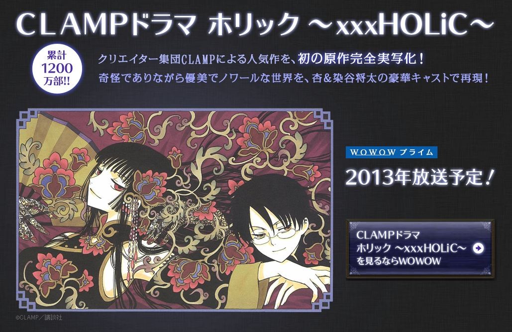 CLAMP¡ÖxxxHOLiC¡×¤¬TV¥É¥é¥Þ²½¡ªWOWOW¥×¥é¥¤¥à¤Ë¤Æ2013ǯ¤ËÊüÁ÷¡ªÐÒ»Ò¡§°É¡¡»Í·î°ìÆü¡§À÷ë¾ÂÀ