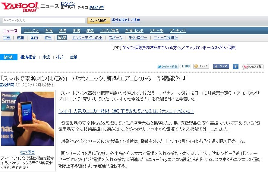 ¡ú¡Ö¥¹¥Þ¥Û¤ÇÅŸ»¥ª¥ó¤Ï¤À¤á¡×¡¡¥Ñ¥Ê¥½¥Ë¥Ã¥¯¡¢¿··¿¥¨¥¢¥³¥ó¤«¤é°ìÉôµ¡Ç½³°¤¹
