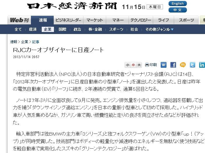 ÆÃÄêÈó±ÄÍø³èưˡ¿Í¡Ê£Î£Ð£ÏË¡¿Í¡Ë¤ÎÆüËܼ«Æ°¼Ö¸¦µæ¼Ô¡¦¥¸¥ã¡¼¥Ê¥ê¥¹¥È²ñµÄ¡Ê£Ò£Ê£Ã¡Ë¤Ï14Æü¡¢¡Ö2013ǯ¼¡¥«¡¼¥ª¥Ö¥¶¥¤¥ä¡¼¡×¤ËÆü»º¼«Æ°¼Ö¤Î¾®·¿¼Ö¡Ö¥Î¡¼¥È¡×¤òÁª½Ð¤·¤¿¤Èȯɽ¤·¤¿¡£