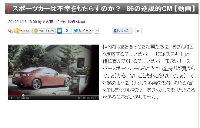 ¥¹¥Ý¡¼¥Ä¥«¡¼¤ÏÉÔ¹¬¤ò¤â¤¿¤é¤¹¤Î¤«¡©¡¡86¤ÎµÕÀâŪCM