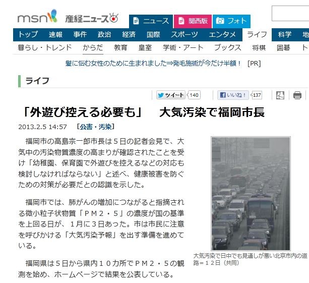 PM2.5Â絤±øÀ÷¤ÇÊ¡²¬»ÔĹ¡Ö³°Í·¤Ó¹µ¤¨¤ëɬÍפ⤢¤ë¡×