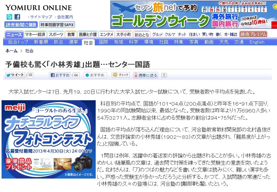 ¥»¥ó¥¿¡¼»î¸³¡§¾®ÎÓ½¨Íº¤ÎÆñ²ò¤Êʸ¾Ï¤Î¤»¤¤¡©¹ñ¸ì¤¬²áµîºÇÄãÊ¿¶ÑÅÀ¤Ë