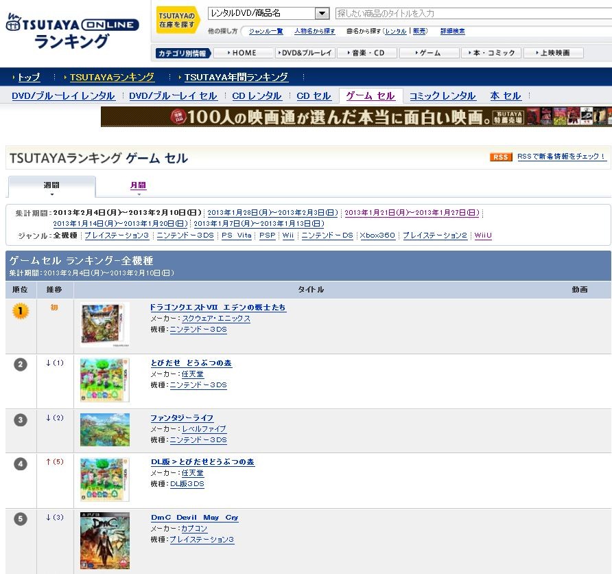 ¡ÚTSUTAYA¥²¡¼¥à¥¦¥£¡¼¥¯¥ê¡¼¡Û1°Ì3DS¡Ø¥É¥é¥´¥ó¥¯¥¨¥¹¥È7¡Ù¡¢2°Ì3DS¡Ø¤È¤Ó¤À¤» ¤É¤¦¤Ö¤Ä¤Î¿¹¡Ù¡¢3°Ì3DS¡Ø¥Õ¥¡¥ó¥¿¥¸¡¼¥é¥¤¥Õ¡Ù