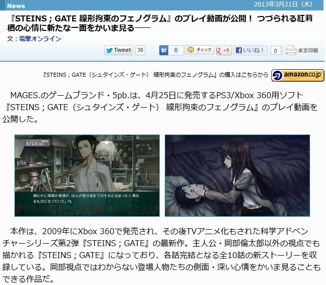 ¡ÖSTEINS;GATE Àþ·Á¹´Â«¤Î¥Õ¥§¥Î¥°¥é¥à¡×¤Î¥×¥ì¥¤Æ°²è¸ø³«¡ª¤Þ¤æ¤ê¤¤¤¤¤¤¤¤¤¤