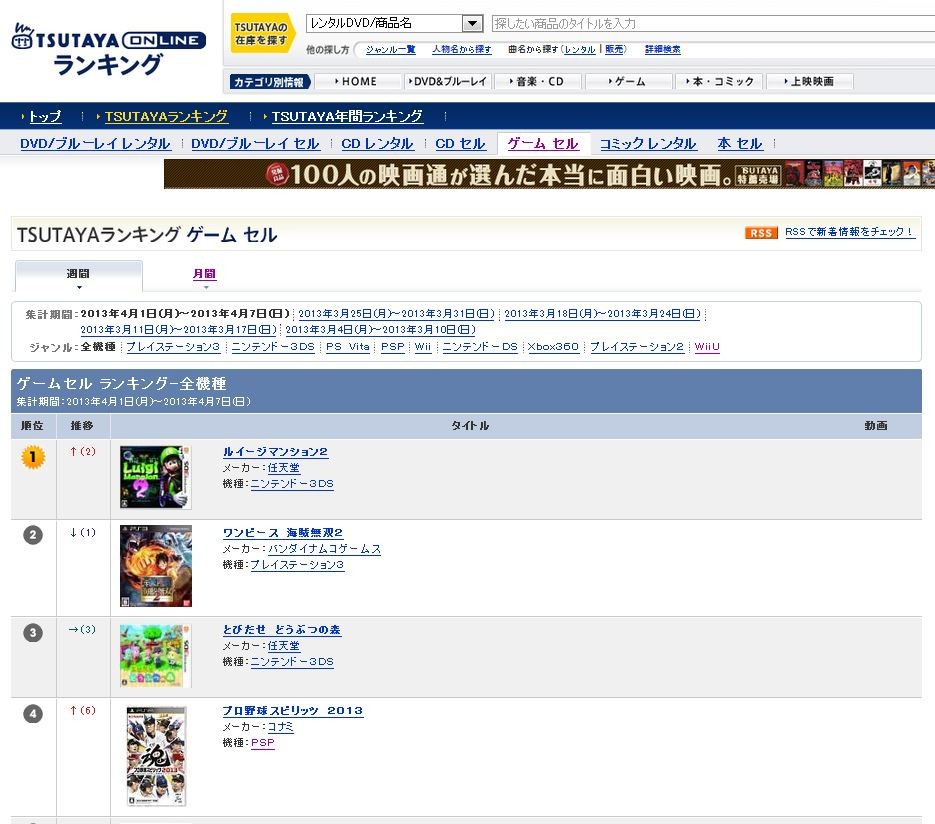 »æÀÚ¤ìhttp://www.tsutaya.co.jp/rank/game.html?r=W090