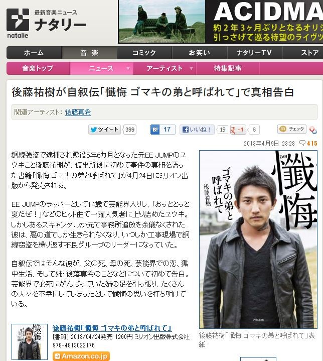 ƼÀþ¶¯Åð¤ÇÂáÊᤵ¤ìĨÌò5ǯ6¥«·î¤È¤Ê¤Ã¤¿¸µEE JUMP¤Î¥æ¥¦¥¤³¤È¸åƣʹ¼ù¤¬¡¢²¾½Ð½ê¸å¤Ë½é¤á¤Æ»ö·ï¤Î¿¿Áê¤ò¸ì¤Ã¤¿½ñÀÒ¡ÖØò²ù ¥´¥Þ¥¤ÎÄï¤È¸Æ¤Ð¤ì¤Æ¡×¤¬4·î24Æü¤Ë¥ß¥ê¥ª¥ó½ÐÈǤ«¤éȯÇ䤵¤ì¤ë¡£
