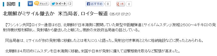 ¥í¥¤¥¿¡¼ÄÌ¿®¤Ï£¶Æü¡¢ËÌÄ«Á¯¤¬ÆüËܳ¤Â¦¤ËŸ³«¤·¤Æ¤¤¤¿¿··¿Ãæµ÷Î¥ÃÆÆ»¥ß¥µ¥¤¥ë¡Ö¥à¥¹¥À¥ó¡×¡Ê¼ÍÄø£²£µ£°£°¡Á£´À饥í¡Ë¤Îȯ¼ÍÂÔµ¡¾õÂÖ¤ò²ò½ü¤·¡¢È¯¼Í¾ì¤«¤éűµî¤·¤¿¤ÈÊ󤸤¿¡£Ê£¿ô¤ÎÊÆÀ¯ÉÜÅö¶É¼Ô¤ÎÏäȤ·¤Æ¤¤¤ë¡£