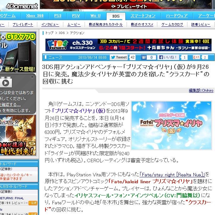 ³ÑÀ¡¼¥à¥¹¤Ï¡¤¥Ë¥ó¥Æ¥ó¥É¡¼3DSÍÑ¥½¥Õ¥È¡Ö¥×¥ê¥º¥Þ¡ù¥¤¥ê¥ä¡×¡Ê²¾¡Ë¤ò2013ǯ9·î26Æü¤ËȯÇ䤹¤ë¤³¤È¤ò¡¤ËÜÆü¡Ê6·î14Æü¡ËÉÕ¤±¤Çȯɽ¤·¤¿¡£²Á³Ê¤ÏÄ̾ïÈǤ¬6300±ß¡¤¥×¥ê¥º¥Þ¡ù¥¤¥ê¥ä¤Î¥Ç¥Õ¥©¥ë¥á¥Õ¥£¥®¥å¥¢¡¤¥ª¥ê¥¸¥Ê¥ë¥¹¥È¡¼¥ê¡¼¤¬¼ýÏ¿¤µ¤ì¤¿¥É¥é¥ÞCD¡¤ÉÁ¤²¼¤í¤·ÆÃÀ½¥¯¥é¥¹¥«¡¼¥É¡Ö¥é¥¤¥À¡¼¡×¤¬Æ±º¤µ¤ì¤¿¸ÂÄêÈǤ¬9240±ß¡Ê¤¤¤º¤ì¤âÀǹþ¡Ë¡£CERO¥ì¡¼¥Æ¥£¥ó¥°¤Ï¿³ººÍ½Äê¤È¤Ê¤Ã¤Æ¤¤¤ë¡£
