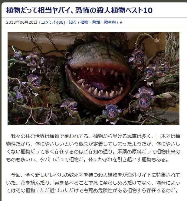 º£²ó¡¢Á´¤¯¿·¤·¤¤¥ì¥Ù¥ë¤ÎÃ×»àΨ¤ò»ý¤Ä»¦¿Í¿¢Êª¤ò¤¬³¤³°¥µ¥¤¥È¤ËÆÃ½¸¤µ¤ì¤Æ¤¤¤¿¡£²Ö¤òŦ¤ó¤À¤ê¡¢¼Â¤ò¿©¤Ù¤ë¤³¤È¤Ç»à¤Ë»ê¤é¤·¤á¤ë¤À¤±¤Ç¤Ê¤¯¡¢¾ì¹ç¤Ë¤è¤Ã¤Æ¤Ï¤½¤Î¿¢Êª¤Ë¤¿¤À¶á¤Å¤¤¤¿¤À¤±¤Ç¤â»à¤Ì´í¸±À¤¬¤¢¤ë¿¢Êª¤¹¤é¸ºß¤¹¤ë¤Î¤À¡£