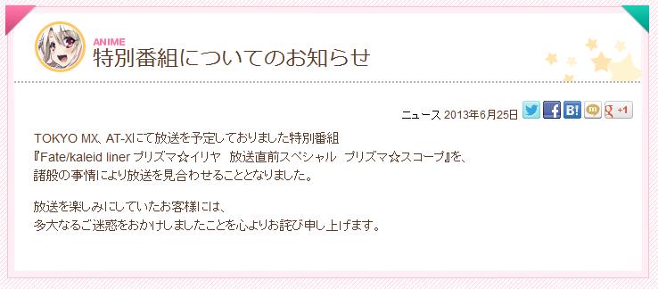 ²Æ¥¢¥Ë¥á¡ÖFate/kaleid liner ¥×¥ê¥º¥Þ¡ù¥¤¥ê¥ä¡×¤ÎÆÃÊÌÈÖÁȤ¬ÊüÁ÷Ãæ»ß¤Ë