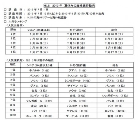 ³ô¼°²ñ¼Ò¥¨¥¤¥Á¡¦¥¢¥¤¡¦¥¨¥¹¤Ï¡¢2013ǯ¤Î²ÆµÙ¤ß¡Ê7·î13Æü¡Á9·î30Æü¡Ë¤ÎͽÌó¾õ¶·¤«¤é³¤³°Î¹¹Ô¤ÎºÇ¿·Æ°¸þ¤Ë¤Ä¤¤¤ÆÈ¯É½¤·¤¿¡£