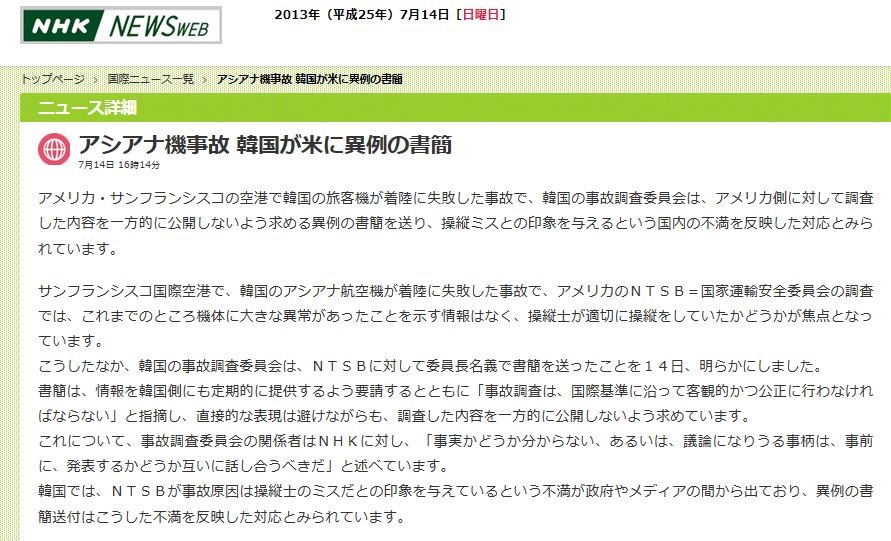¥µ¥ó¥Õ¥é¥ó¥·¥¹¥³¹ñºÝ¶õ¹Á¤Ç¡¢´Ú¹ñ¤Î¥¢¥·¥¢¥Ê¹Ò¶õµ¡¤¬ÃåΦ¤Ë¼ºÇÔ¤·¤¿»ö¸Î¤Ç¡¢¥¢¥á¥ê¥«¤Î£Î£Ô£Ó£Â¡á¹ñ²È±¿Í¢°ÂÁ´°Ñ°÷²ñ¤ÎÄ´ºº¤Ç¤Ï¡¢¤³¤ì¤Þ¤Ç¤Î¤È¤³¤íµ¡ÂΤËÂ礤ʰ۾郎¤¢¤Ã¤¿¤³¤È¤ò¼¨¤¹¾ðÊó¤Ï¤Ê¤¯¡¢Áà½Ä»Î¤¬Å¬ÀÚ¤ËÁà½Ä¤ò¤·¤Æ¤¤¤¿¤«¤É¤¦¤«¤¬¾ÇÅÀ¤È¤Ê¤Ã¤Æ¤¤¤Þ¤¹¡£
