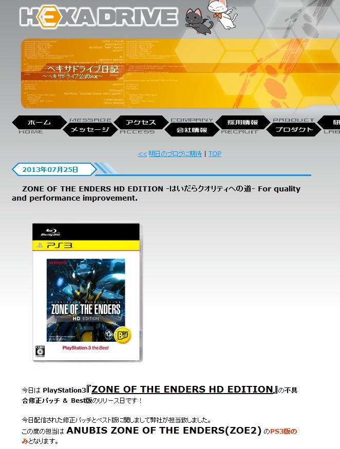 PS3¡ØZONE OF THE ENDERS HD EDITION¡Ù½¤Àµ¥Ñ¥Ã¥Á¤¬¥ê¥ê¡¼¥¹¡ª¥Ø¥¥µ¥É¥é¥¤¥ÖÍǽ¤Ç¤¹¤Í¤¨¤¨¤¨¤¨