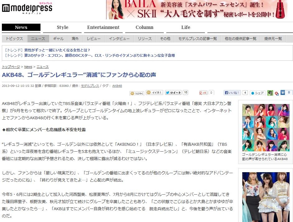 ¥°¥ë¡¼¥×¤È¤·¤Æ¥´¡¼¥ë¥Ç¥ó¥¿¥¤¥à¤ÎÃϾåÇȥ쥮¥å¥é¡¼¤¬¥¼¥í¤Ë¤Ê¤Ã¤¿¤³¤È¤Ç¡¢¥¤¥ó¥¿¡¼¥Í¥Ã¥È¾å¤Ç¥Õ¥¡¥ó¤«¤éAKB48¤Î¹Ô¤¯Ëö¤ò°Æ¤¸¤ëÀ¼¤¬¾å¤¬¤Ã¤Æ¤¤¤ë¡£
