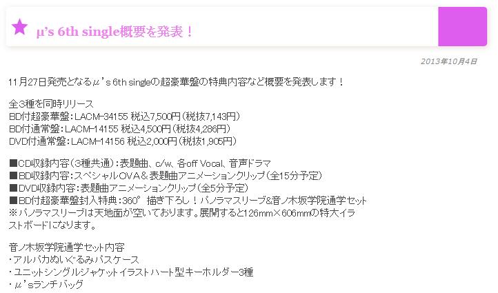6th¥·¥ó¥°¥ë¤Ë¤Ä¤¤¤ÆÄɤ䫤±¤Ç¾¯¤·¤À¤±¡£¤Ê¤ó¤Èº£²ó¡¢BDÈǤˤϥé¥Ö¥é¥¤¥Ö¡ª½é¤Î£Ï£Ö£Á¤¬¼ýÏ¿¤µ¤ì¤Þ¤¹¡ª ¤â¤Á¤í¤ó¡¢´°Á´¿·ºî¤Ç¤¹¡£ÉÁ¤²¼¤í¤·¤Î¥Ñ¥Î¥é¥Þ¥¹¥ê¡¼¥Ö¤È²»¥ÎÌÚºä³Ø±¡Ä̳إ»¥Ã¥È¤¬ÉÕ°¤¹¤ë͹ë²ÚÈפ⤢¤ë¤Î¤Ç¡¢Áª¤ó¤ÇͽÌ󤷤Ƥ¯¤À¤µ¤¤¤Í #lovelive Sun_¤ï¤«¤Ð