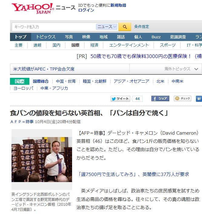 ¡ÚAFP¡á»þ»ö¡Û¥Ç¡¼¥Ó¥Ã¥É¡¦¥¥ã¥á¥í¥ó¡ÊDavid Cameron¡Ë±Ñ¼óÁê¡Ê46¡Ë¤Ï¤³¤Î¤Û¤É¡¢¿©¥Ñ¥ó1¶Ô¤ÎÈÎÇä²Á³Ê¤òÃΤé¤Ê¤¤¤³¤È¤òǧ¤á¤¿¡£¤¿¤À¤·¡¢¤½¤ÎÍýͳ¤Ï¼«Ê¬¤Ç¥Ñ¥ó¤ò¾Æ¤¤¤Æ¤¤¤ë¤«¤é¤À¤½¤¦¤À¡£