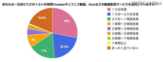 ¤½¤ì¤Ë¤è¤ë¤È¡¢1Æü¤¢¤¿¤ê¤Îư²èÇÛ¿®¥µ¡¼¥Ó¥¹¤ÎÍøÍÑ»þ´Ö¤Ï¡¢¡Ö10ʬ̤Ëþ¡×¤¬ºÇ¿¤Ç28¡ó¡£¡Ö10ʬ¡Á30ʬ̤Ëþ¡×20.6¡ó¡¢¡Ö¤Þ¤Ã¤¿¤¯´Ñ¤Æ¤¤¤Ê¤¤¡×18.8¡ó¤¬Â³¤¡¢°Ê¹ß¤Ï¡Ö30ʬ¡Á1»þ´Ö̤Ëþ¡×17¡ó¡¢¡Ö1»þ´Ö¡Á2»þ´Ö̤Ëþ¡×8¡ó¤È¡¢Ä¹¤¯¤Ê¤ë¤Û¤ÉÈæÎ¨¤ÏÄ㸺¤·¤¿¡£¤Á¤Ê¤ß¤Ë¡Ö7»þ´Ö°Ê¾å¡×¤Ï0.4¡ó¤À¤Ã¤¿¡£