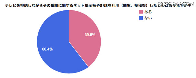 ¡Ö¥Æ¥ì¥Ó¤ò´Ñ¤Ê¤¬¤é¤½¤ÎÈÖÁȤ˴ؤ¹¤ë¥Í¥Ã¥È·Ç¼¨ÈĤäSNS¤ò±ÜÍ÷¡¦Åê¹Æ¤·¤¿¤³¤È¤¬¤¢¤ë¤«¡×¤È¼ÁÌ䤷¤¿¤È¤³¤í¡¢¡Ö¤¢¤ë¡×39.6¡ó¡¢¡Ö¤Ê¤¤¡×60.4¡ó¤È¤Ê¤ê¡¢·Ð¸³¤Î¤Ê¤¤¿Í¤Î¤Û¤¦¤¬¾å²ó¤Ã¤¿¡£