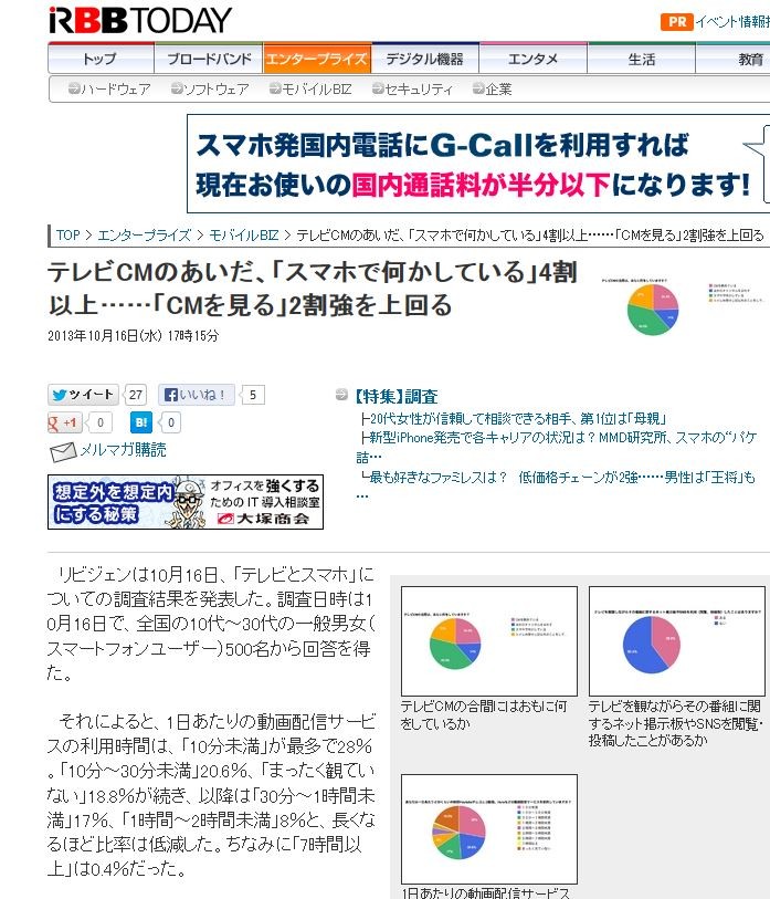 ¥ê¥Ó¥¸¥§¥ó¤Ï10·î16Æü¡¢¡Ö¥Æ¥ì¥Ó¤È¥¹¥Þ¥Û¡×¤Ë¤Ä¤¤¤Æ¤ÎÄ´ºº·ë²Ì¤òȯɽ¤·¤¿¡£