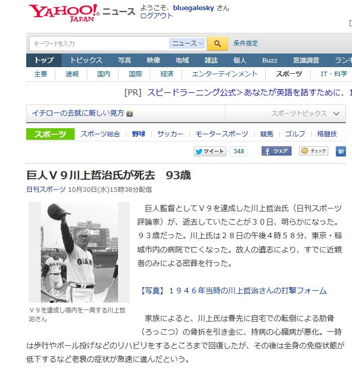 ¡Úë¾Êó¡Û¸µµð¿Í·³´ÆÆÄ¤È¤·¤Æ9Ï¢ÇÆ¤òãÀ®¤·¤¿Àî¾åů¼£»á¤¬»àµî¡¢93ºÐ