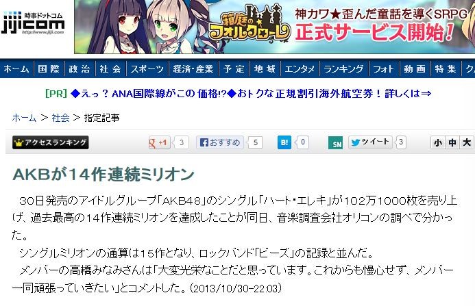AKB¤¬¥ß¥ê¥ª¥ó¤È¤«´Ø·¸Ìµ¤¤¡£