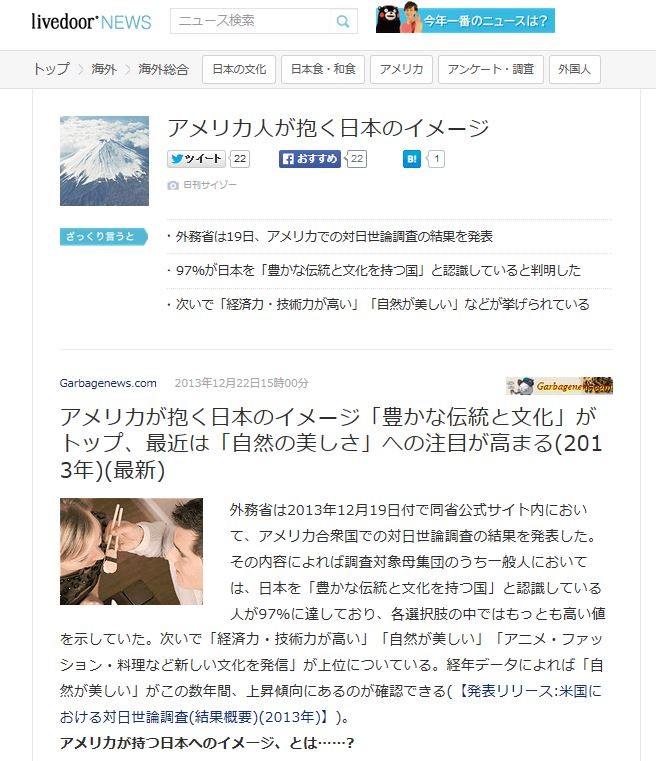 ¡¦³°Ì³¾Ê¤Ï2013ǯ12·î19ÆüÉÕ¤ÇÆ±¾Ê¸ø¼°¥µ¥¤¥ÈÆâ¤Ë¤ª¤¤¤Æ¡¢¥¢¥á¥ê¥«¹ç½°¹ñ¤Ç¤ÎÂÐÆüÀ¤ÏÀÄ´ºº¤Î¡¡·ë²Ì¤òȯɽ¤·¤¿¡£¤½¤ÎÆâÍÆ¤Ë¤è¤ì¤ÐÄ´ººÂоÝÊ콸ÃĤΤ¦¤Á°ìÈ̿ͤˤª¤¤¤Æ¤Ï¡¢ÆüËܤò¡Öˤ«¤ÊÅÁÅý¤Èʸ²½¤ò»ý¤Ä¹ñ¡×¤Èǧ¼±¤·¤Æ¤¤¤ë¿Í¤¬97¡ó¤Ë㤷¤Æ¤ª¤ê¡¢³ÆÁªÂò»è¤ÎÃæ¤Ç¤Ï¤â¤Ã¤È¤â¹â¤¤Ãͤò¼¨¤·¤Æ¤¤¤¿¡£
